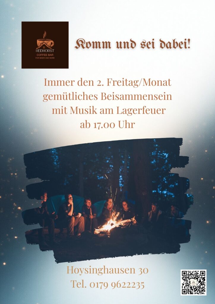 In unserer alten Remise ist in liebevollen Umbaumaßnahmen eine urige Biker-Café und Bar, der HEIDHORST, entstanden. Wir bieten hier bis zu 37 Sitzgelegenheiten drinnen in der Waffenschmiede oder am Tresen und draußen im Zimmer im Grünen oder den rustikalen, selbst gestalteten Tischen an, so dass jeder seinen Lieblingsplatz findet. Die Waffenschmiede ist beheizbar.